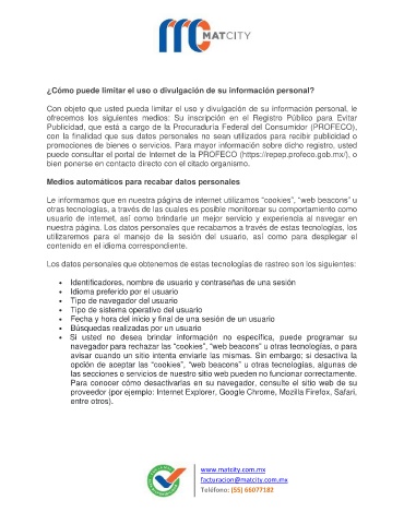 nuestra página. Los datos personales que recabamos a través de estas tecnologías, los